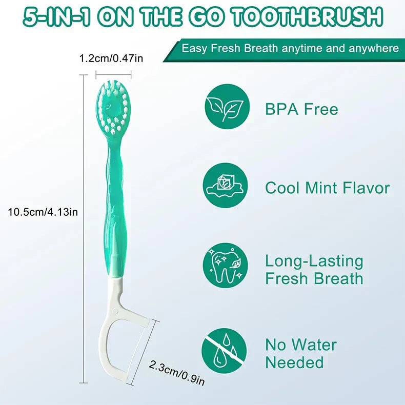 Experience ultimate oral care on-the-go with this innovative 5 in 1 Mini Toothbrush, designed for efficiency and convenience without sacrificing hygiene.